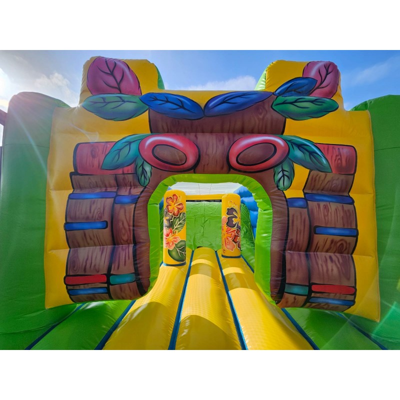 Cette aire de saut gonflable combine parfaitement obstacles, zone de rebond et glissade pour offrir aux enfants un moment d’amusement intense et sécurisé. Adaptée aux plus jeunes comme aux aventuriers en herbe, elle accueille jusqu’à 10 à 12 enfants âgés de 3 à 12 ans. Avec ses dimensions de 10 m de profondeur, 4,5 m de largeur et 2,9 m de hauteur, elle s’intègre facilement dans la plupart des espaces extérieurs ou salles polyvalentes (prévoir 12 m x 6 m x 3,5 m pour une installation optimale).