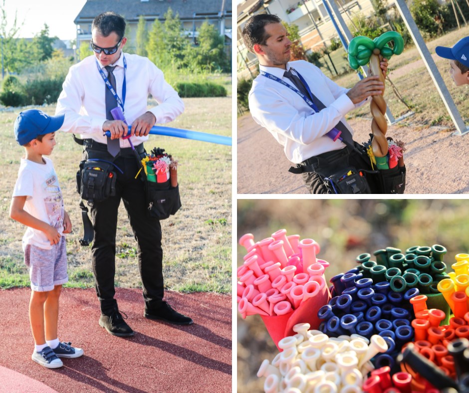 Chaque prestation est préparée avec soin à l’aide de ballons en latex et de matériel adapté, afin de garantir des créations rapides, originales et sécurisées. Nos animateurs s’adaptent à votre événement et à votre public en réalisant des sculptures personnalisées : formes animales, végétales ou créations originales, présentées directement aux enfants et à leurs familles.